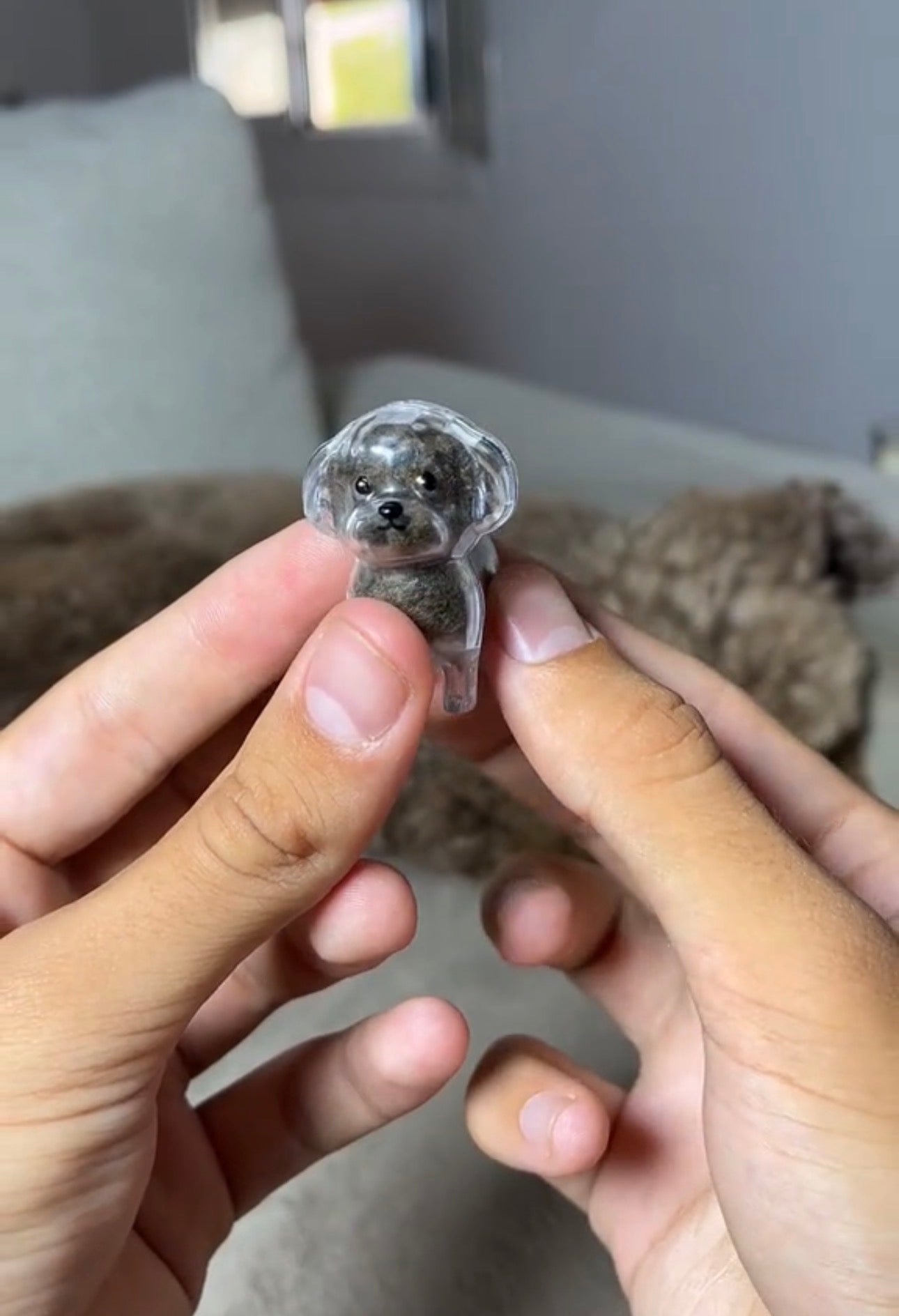 Just a small pinch — only a few soft strands are enough to fill the keepsake. You don’t need to cut anything; most customers simply collect loose fur from brushing or cuddling.